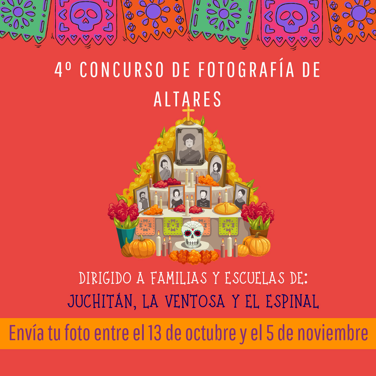 Las fotografías se recibirán digitalmente del lunes 13 de octubre al miércoles 5 de noviembre y los altares ganadores serán publicados en nuestras redes sociales, sitio web y en el periódico digital Cortamortaja, a partir del viernes 7 de noviembre.